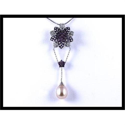 This luxurious 18k yellow gold diamond and Pearl pendant contains 110 diamonds and one yellow/gold pearl at 11mm (7/16") around. This pendant measures pendant 20mm (3/4") at widest x 32mm (1 1/4") long. This piece will stand out against the ordinary and will become a definite attraction.