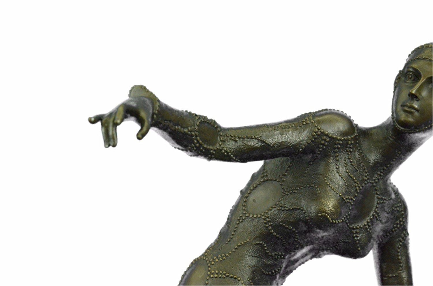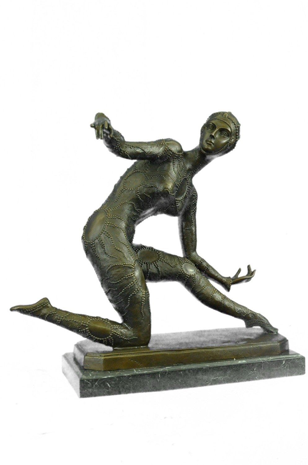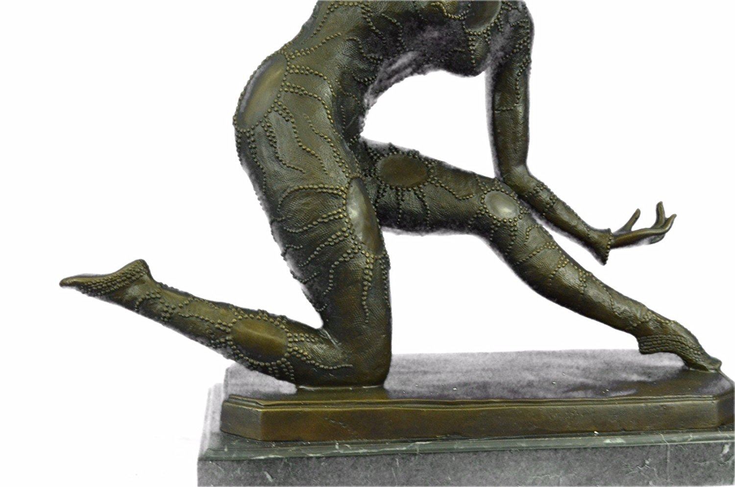 This gorgeous bronze sculpture is called The Leotard Dancer. She wears an extremely intricately detailed leotard that fits her skin tight and exposes her body in certain spots. She is kneeling on one leg and extends her other leg out in front of her. She has sweet and innocent facial details, on her head she wears a cap that matches her leotard. This sculpture was cast using the Lost Wax Method. This Bronze sculpture is handmade and was casted using the Lost Wax Method. Bronze Dimensions with Marble Base: Height16 X Width16 inches. Weight: 25 LBS. Inventory: 2697B16862