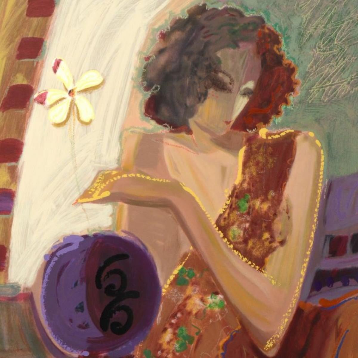 "Exotic Flower" is a limited edition hand embellished serigraph on canvas by Sabzi, numbered and hand signed by the artist. Includes Certificate of Authenticity. Measures approx. 24" x 29.5" (image).