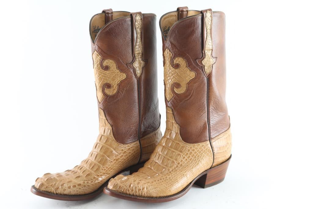 With light tan color , with selected crocodile hide, size 9D, ( 72426) fine to excellent condition, 9-10 scale