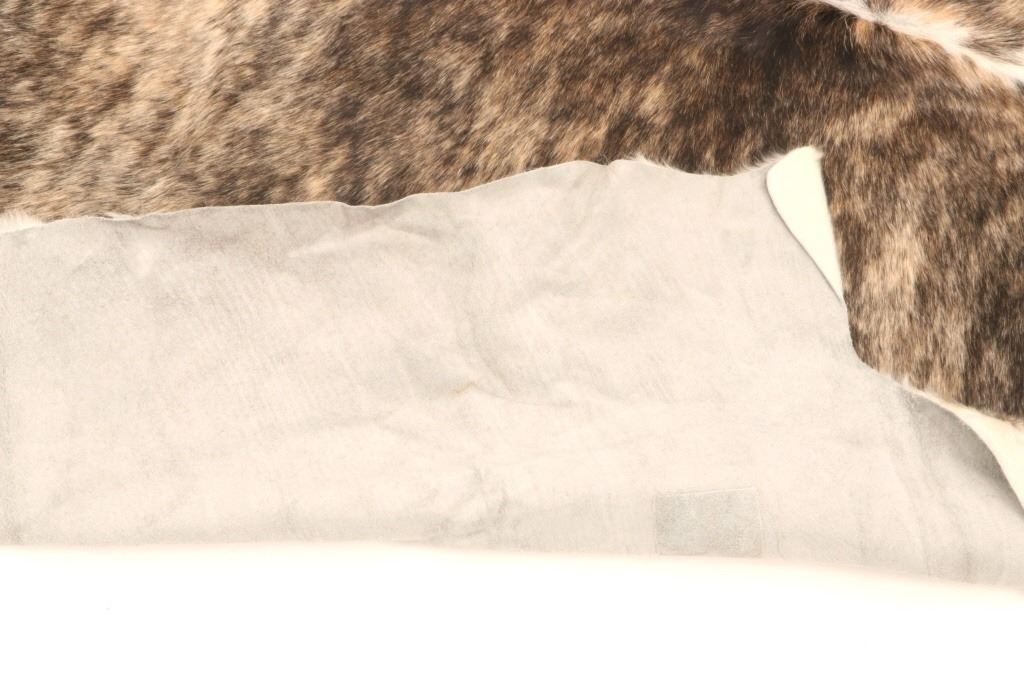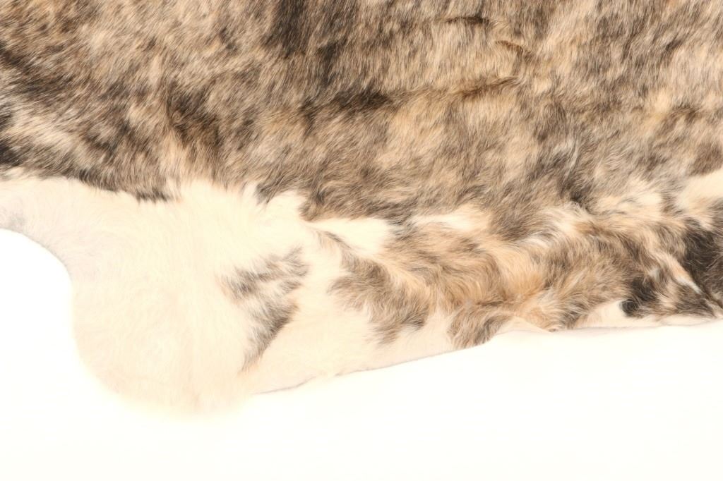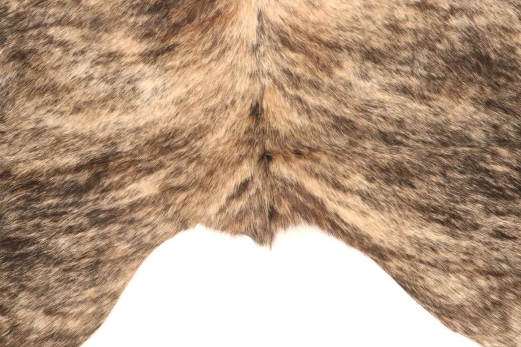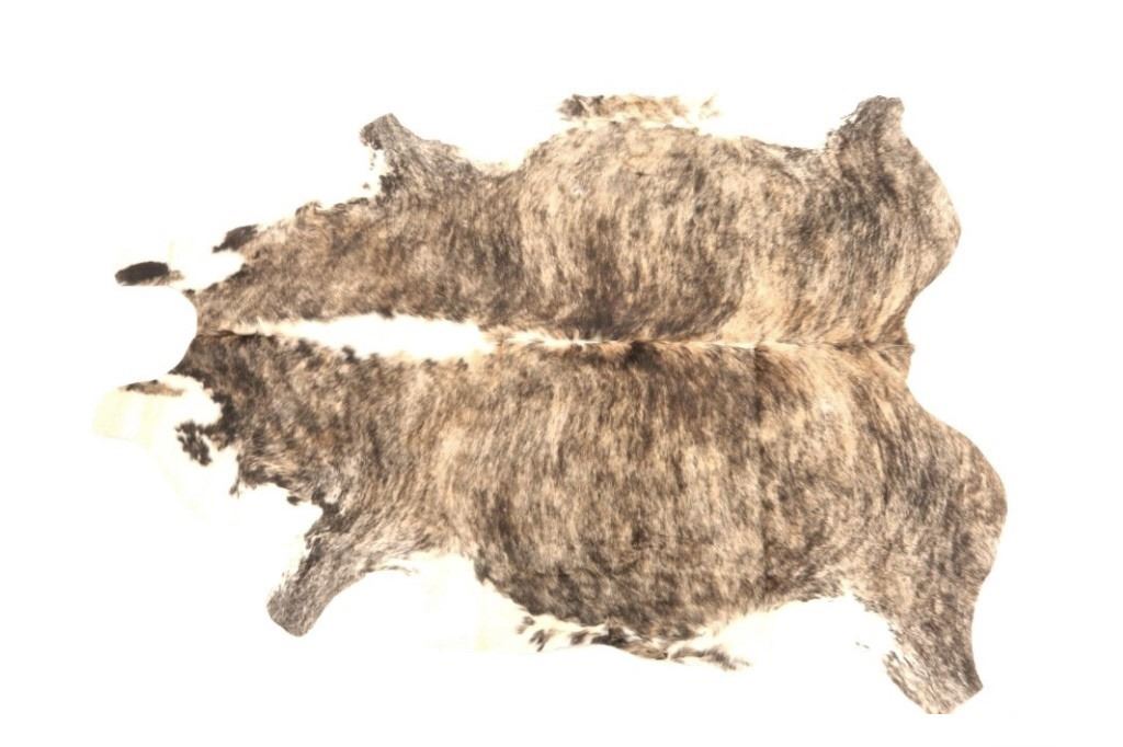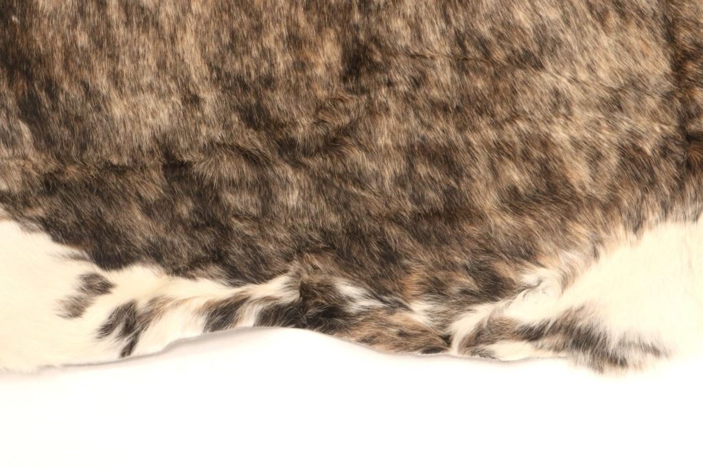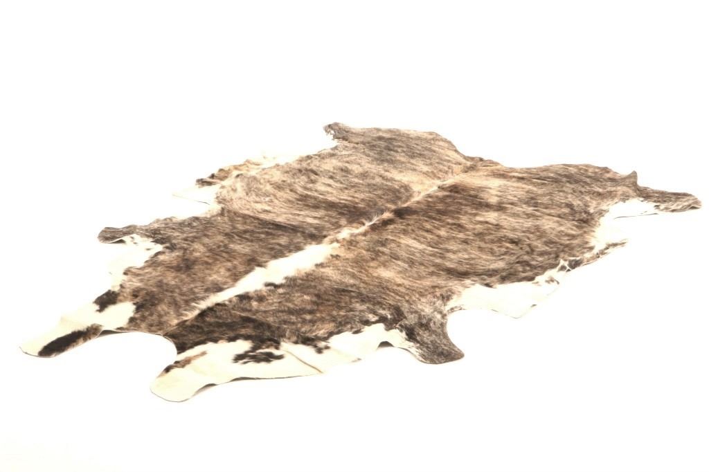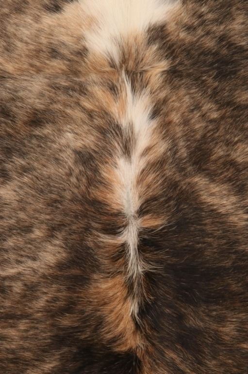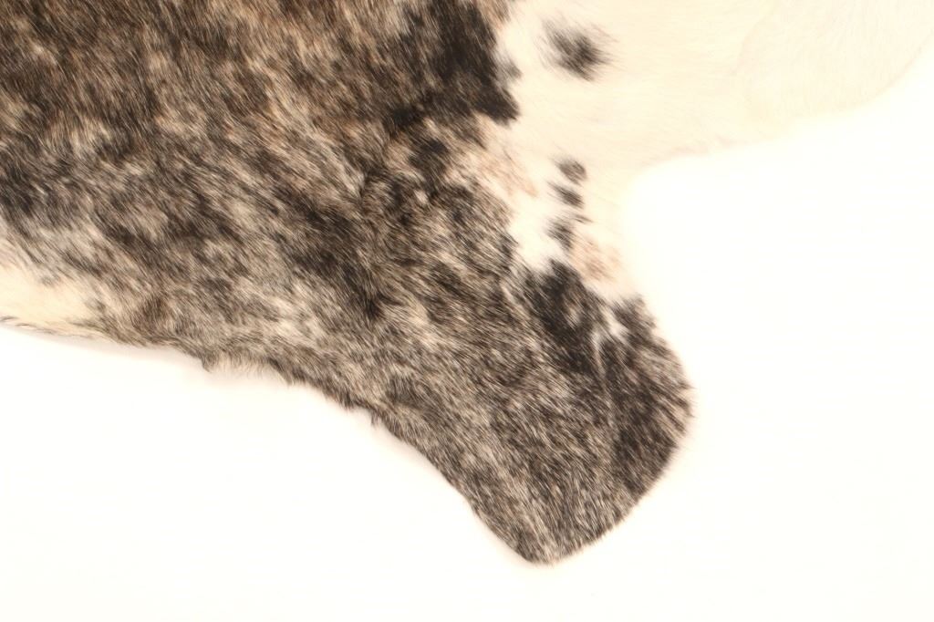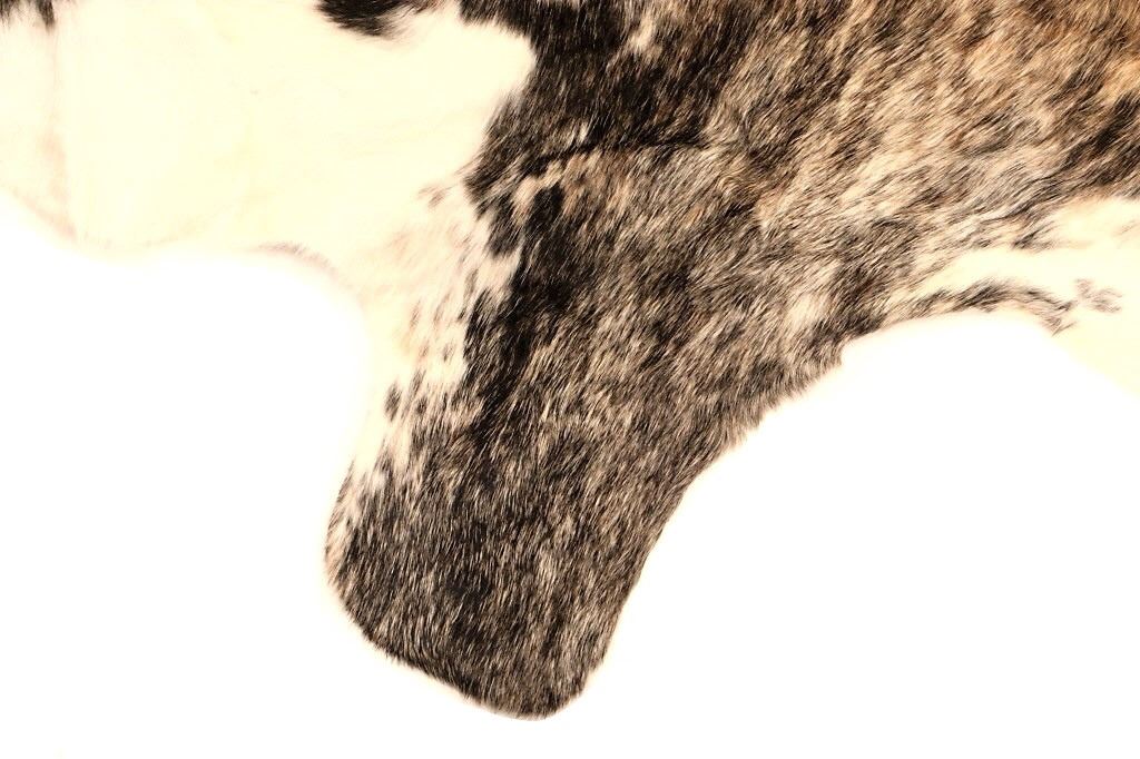 This is an excellent, premium cowhide rug with beautiful tri-colored, brindle coloring, commonly referred to as Salt & Pepper and Speckled. Tri-Colored, Salt & Pepper cowhides are one of the most desired and of the highest quality, with this example showing classic colors of white, light brown, black, and tans/browns. The cowhide (also referred to as cow hide, steerhide, steer hide) is a brand-new example, being professionally tanned and in pristine condition. The rug is also considered an Extra-Large (XL) to Extra-Extra-Large (XXL) size, being 8 feet long by 6 feet 2 inches wide.