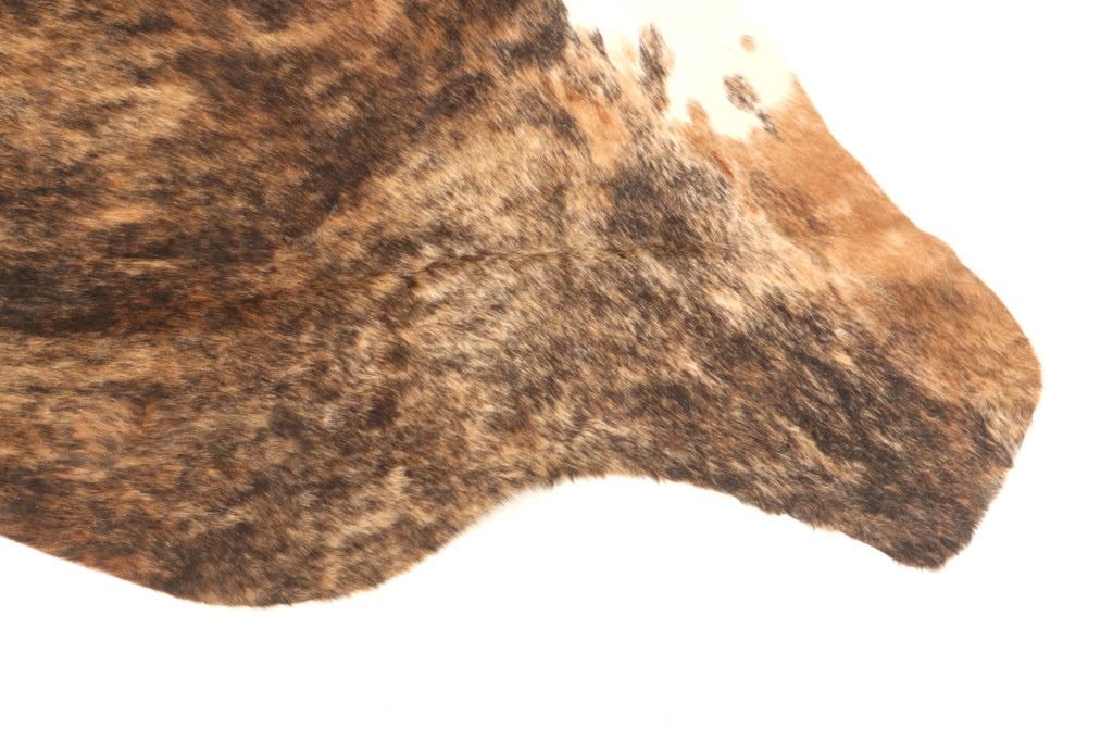 This is an excellent, premium cowhide rug with beautiful tri-colored, brindle coloring, commonly referred to as Salt & Pepper and Speckled. Tri-Colored, Salt & Pepper cowhides are one of the most desired and of the highest quality, with this example showing classic colors of white, greys, black, and tans/browns. The cowhide (also referred to as cow hide, steerhide, steer hide) is a brand-new example, being professionally tanned and in pristine condition. The rug is also considered an Extra-Large (XL) to Extra-Extra-Large (XXL) size, being 8 foot long by 6 feet 7 inches wide.