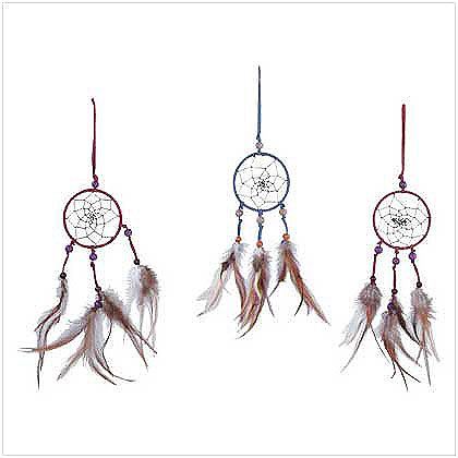 Exotic Windcatcher Set **|**|** Exotic Windcatcher Set Pluck your dreams from the wind with the mystic webbing of these beautifully beaded and feathered windcatchers. 3 x 13" long. Sold in a pack of 12. (WFM-30653) Dream catchers, Windcatchers, Native American