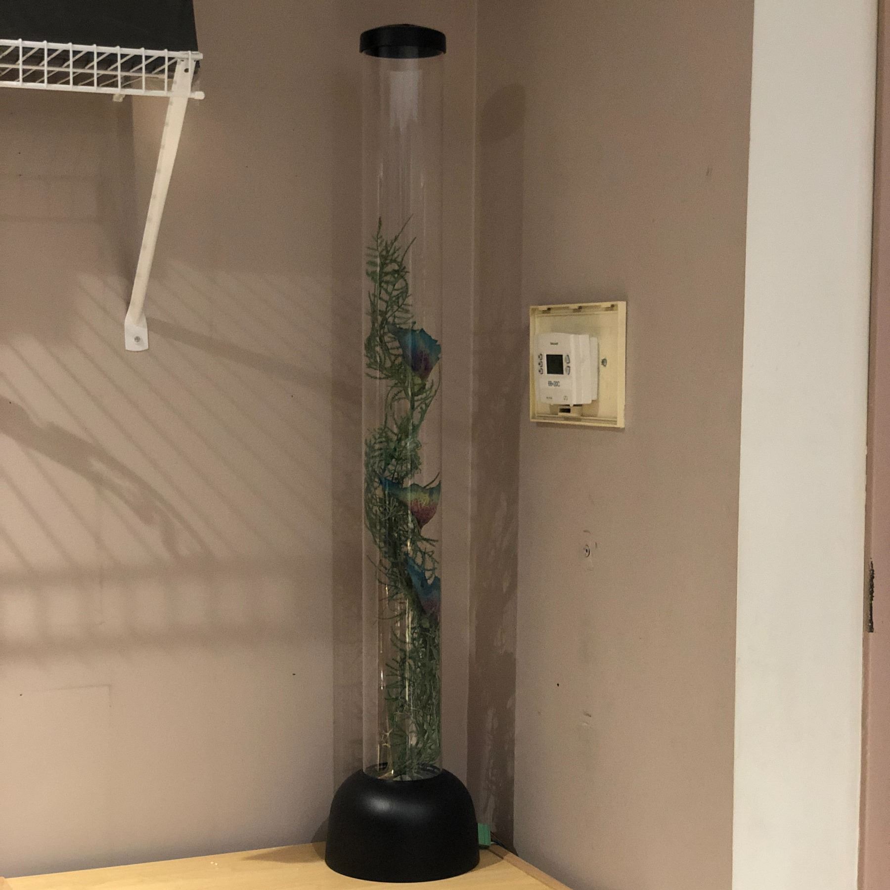 Exotic artificial flower in lighted plexiglass tube - approx 40" tall (From the superhero show)