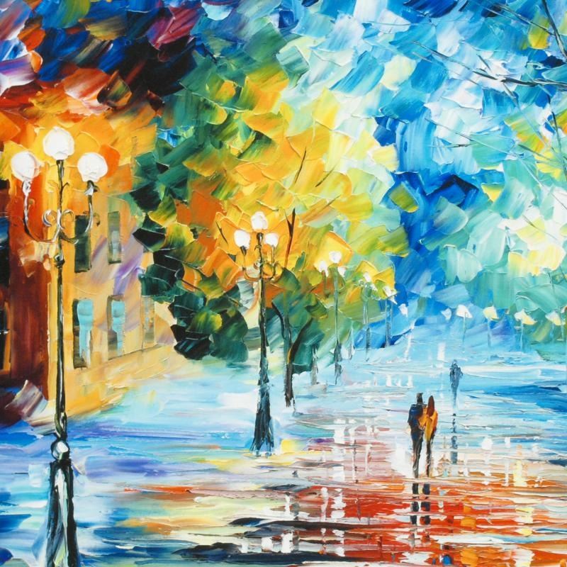 Leonid Afremov's masterful use of color and texture make his paintings unique collectibles that are sure to brighten any wall. "Expansive Canopy" is a limited edition giclee on stretched canvas, numbered and bears Afremov's authorized signature. This piece comes gallery wrapped and ready to hang. Includes Certificate of Authenticity! Measures approx. 27.5" x 16" (image). Retail Price $500.00. PRICE INCUDES FREE SHIPPING IN THE U.S. - SHIPPING WILL BE ADDED TO YOUR INVOICE FOR ALL BUYERS OUTSIDE OF THE U.S.