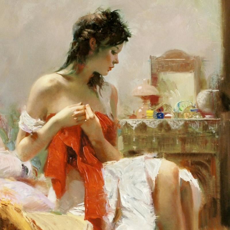 Pino's portraits allow glimpses into intensely personal, intimate spaces, conveying emotion through rich, warm color and sensual brushwork. "Expectations" is a limited edition giclee on canvas that has been hand-embellished by Pino himself, AP numbered and hand signed by Pino (1939-2010). Includes Certificate of Authenticity! Measures approx. 16" x 12" (image).