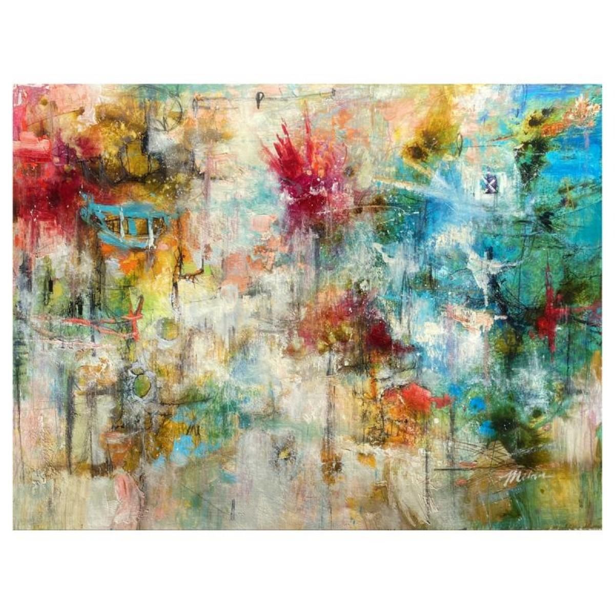 "Explosions In The Heavens" is an original painting, mixed media on paperby John Milan. It is hand signed by the artist and accompanied by a certificate of authenticity. Measures approximately 22" x 30" (image).