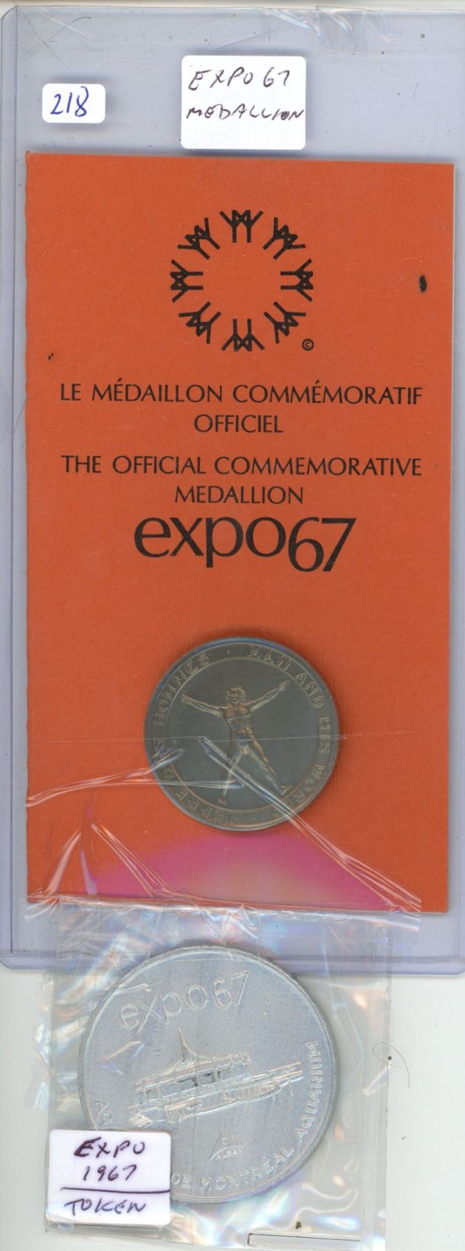 Expo 1967 (Montreal) 1 Medallion and 1 Token in brown Cardboard Holder
