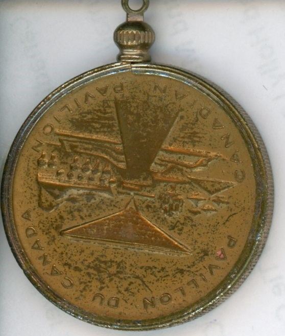 Expo 67 Canadian Pavilion medal. Housed in a bezel.