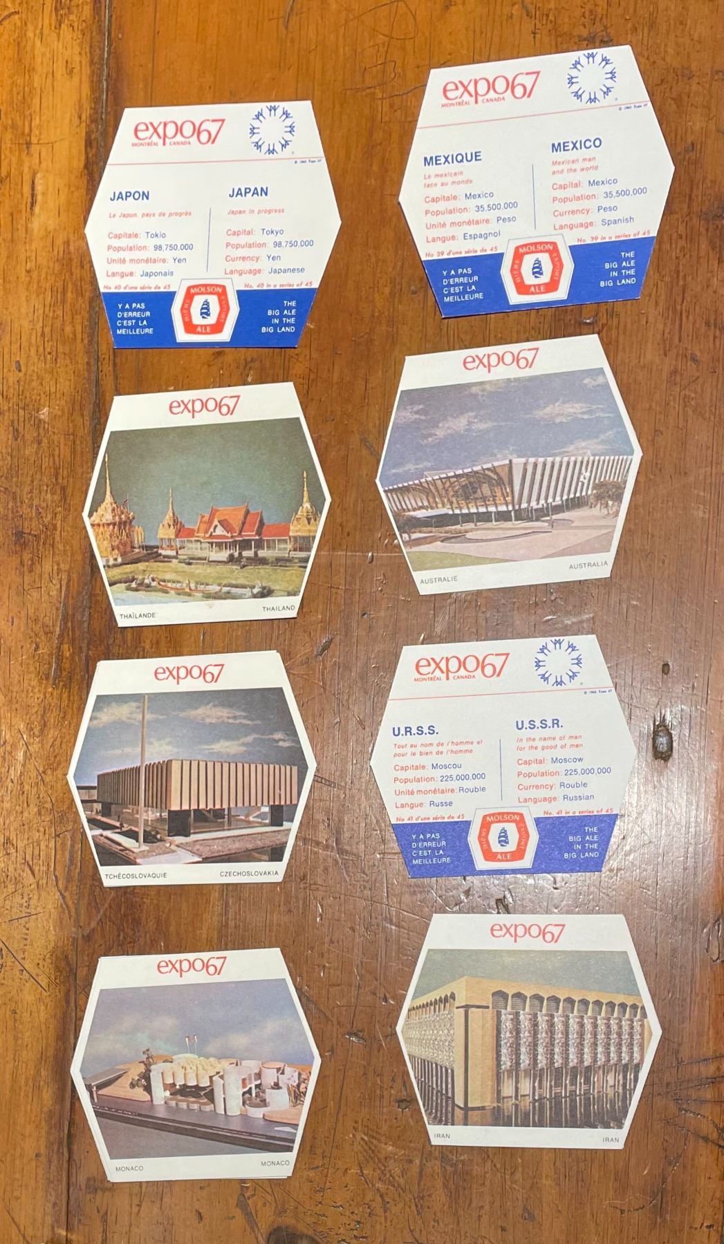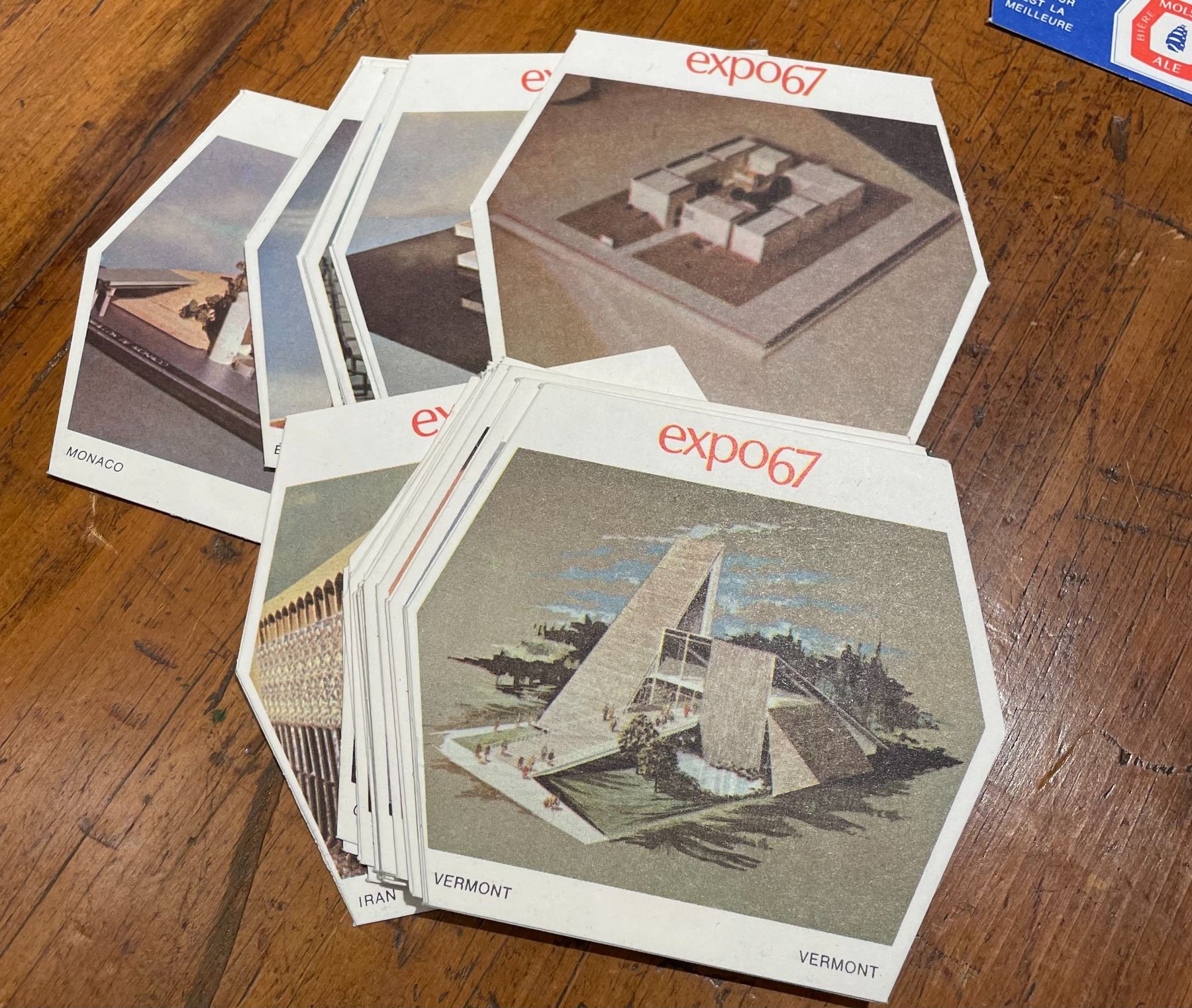 Ensemble complet de 45 cartes et boite, datees 1963 Expo 67.