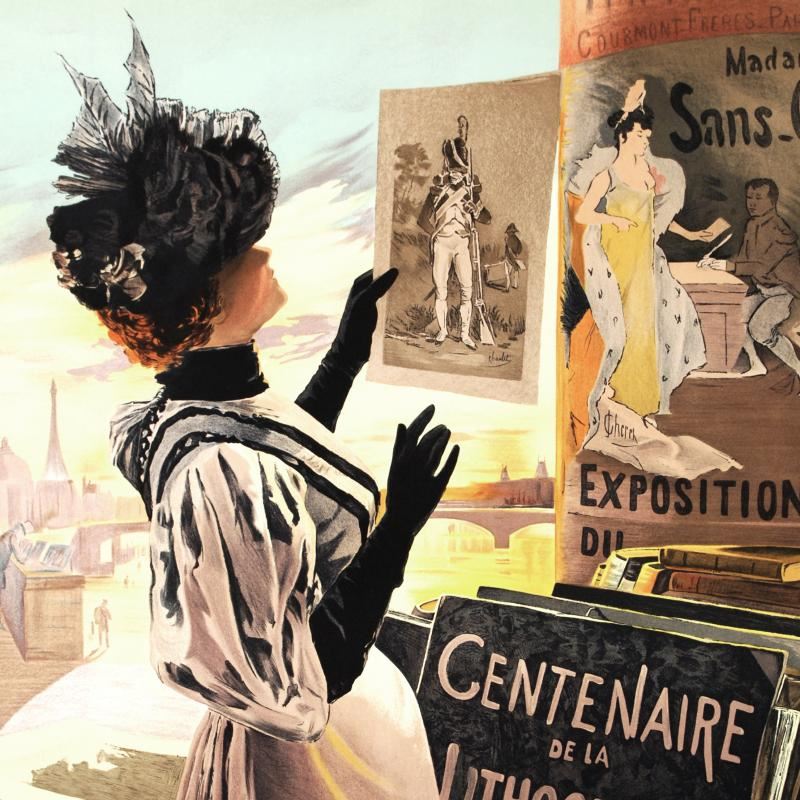 "Exposition Du Centenaire" is a hand pulled lithograph on paper by the RE Society, image originally by Hugo D'Alesi. Includes Certificate of Authenticity! Measures approx. 22" x 31" (image).