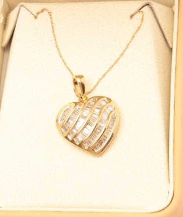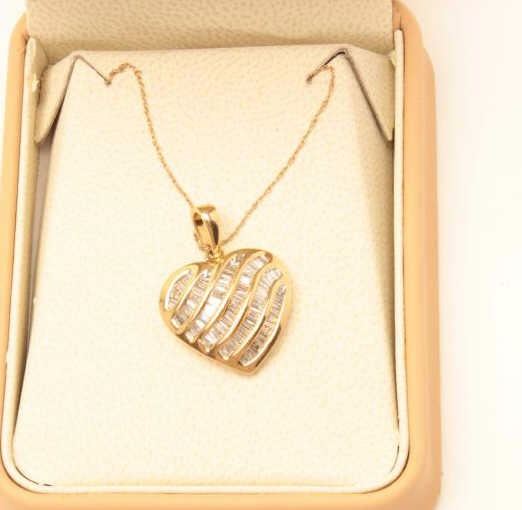 Exquisite 14 karat yellow gold ladies custom made necklace channel set with over 72 baguette cut diamonds weighing approx. 2.00 carats of G-I colors and mostly SI clarity. Retail $3,000-$4,000 Estimate $500-1000 Verylabor intensive.