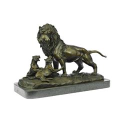 Male Lion With Cubs Bronze Figurine on Marble Base Statue1242eb - Male Lion With Cubs Bronze Figurine on Marble Base Statue