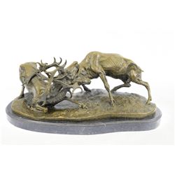 Bronze Marble Statue Elk Deer Stag Ranch Hunting Lodge It is mating season as the beholder comes across a battle of masculine might between two reinde