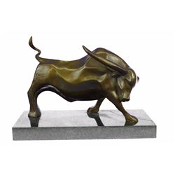This magnificent sculpture is of a charging bull. With his head down, his nostrils' flared and his muscles tightened he stomps the ground before...