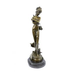 Nude Girl Bronze Statue on Marble Base Figure2184eb - Nude Girl Bronze Statue on Marble Base Figure