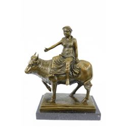 Young Woman Rides a Bull Bronze Statue on Marble Base Sculpture1772eb - Young Woman Rides a Bull Bronze Statue on Marble Base Sculpture