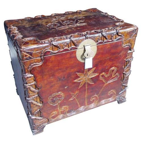 <tr><td>Title:Exquisite Chinese Qing Dy. Engraved Wood Trunk</td></tr>