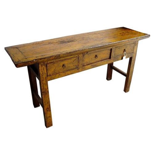 The antique furniture is a piece of exquisite chinese Qing dynasty's altar table made of  wood gathered from Hebei province in China.A wonderful piece for a room that can hold it.At the beginning of the Qing Dynasty, furniture followed Ming patterns and styles.Qing Furniture showed its own uniqueness with the absorption of western art. It was larger in size with grandeur and pageantry.Engraving was a popular and important means of furniture decoration. The subjects range from auspicious character patterns, to geometric patterns and scenes in nature with animals, mountains and waters, flowers and grass. Color painting, especially gold painting, was widely used.Commercial symbols emerged, such as patterns concerning money and fortune.To later Qing furniture has less engraving ,instead ,inlays of stone,  which catch the eye more easily than exquisite engraving, are used to tell of the luxurious lifestyle of the owner. In addition, color and gold painting become the vogue depicting the preference for gaudiness by the wealthy.
