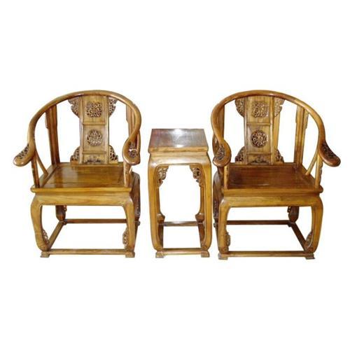 The antique furniture is a set of exquisite chinese Qing dynasty's tea table with armchairs made of wood gathered from Hebei province in China.A wonderful piece for a room that can hold it.At the beginning of the Qing Dynasty, furniture followed Ming patterns and styles.Qing Furniture showed its own uniqueness with the absorption of western art. It was larger in size with grandeur and pageantry.Engraving was a popular and important means of furniture decoration. The subjects range from auspicious character patterns, to geometric patterns and scenes in nature with animals, mountains and waters, flowers and grass. Color painting, especially gold painting, was widely used.Commercial symbols emerged, such as patterns concerning money and fortune.To later Qing furniture has less engraving ,instead ,inlays of stone, which catch the eye more easily than exquisite engraving, are used to tell of the luxurious lifestyle of the owner. In addition, color and gold painting become the vogue depicting the preference for gaudiness by the wealthy.