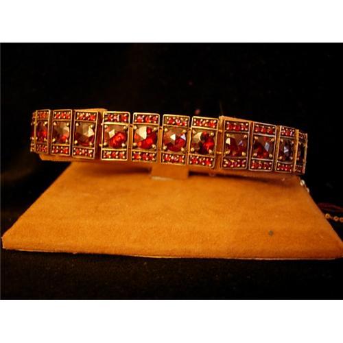 Exquisite Circa 1900 garnet flexible bracelet set in "garnet gold" which would be silver gilt, low karat gold, brass or goldfilled (all were typical settings for Victorian garnet jewelry) - attractive rectangular design numerous round faceted garnets prong set - FANTASTIC PIECE - FABULOUS CONDITION