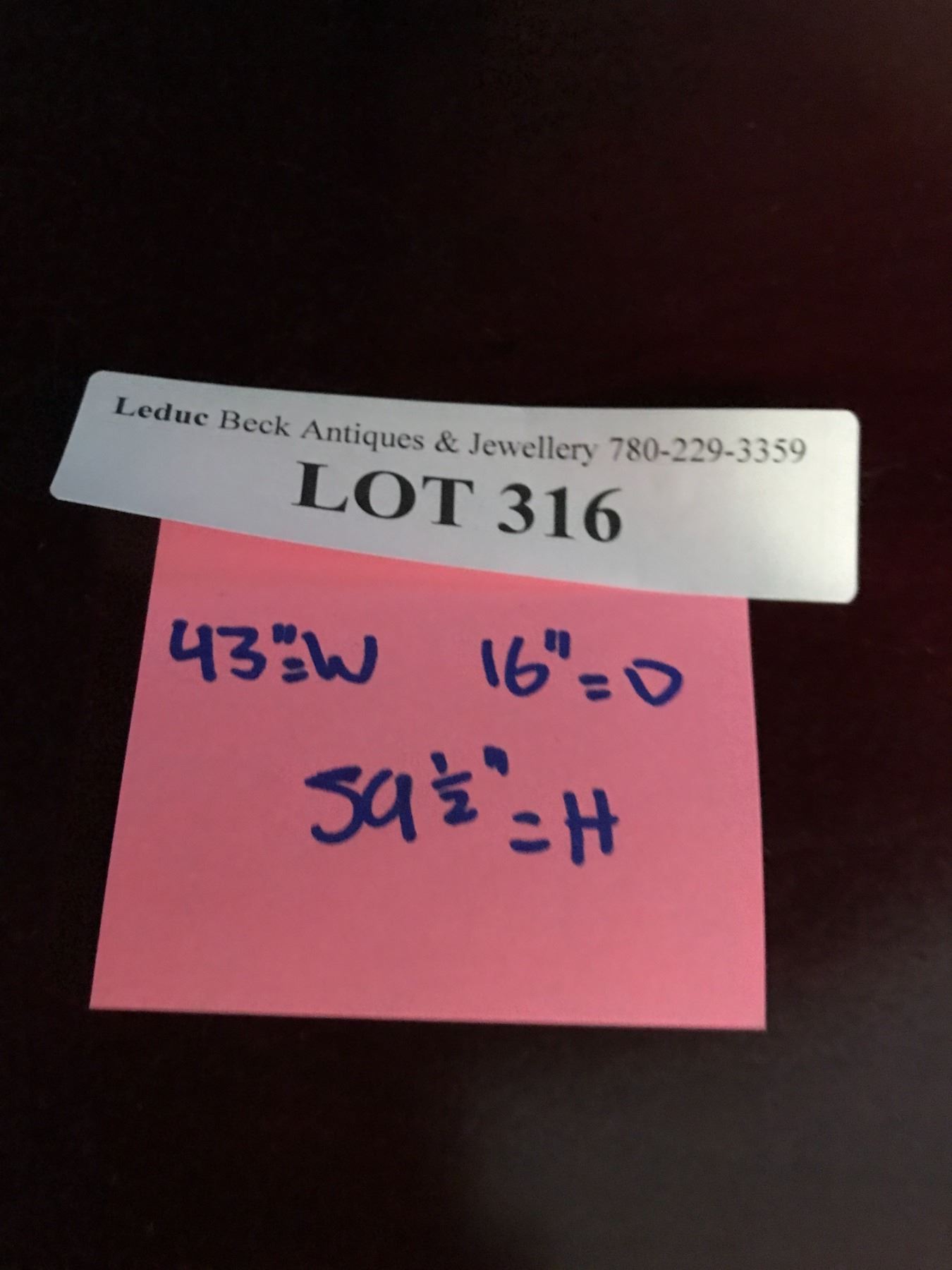 The address will be disclosed to winning bidders only once the auction has closed. Please contact Leduc Beck Antiques & Jewellery if you have any questions 1 (780) 966-2133.