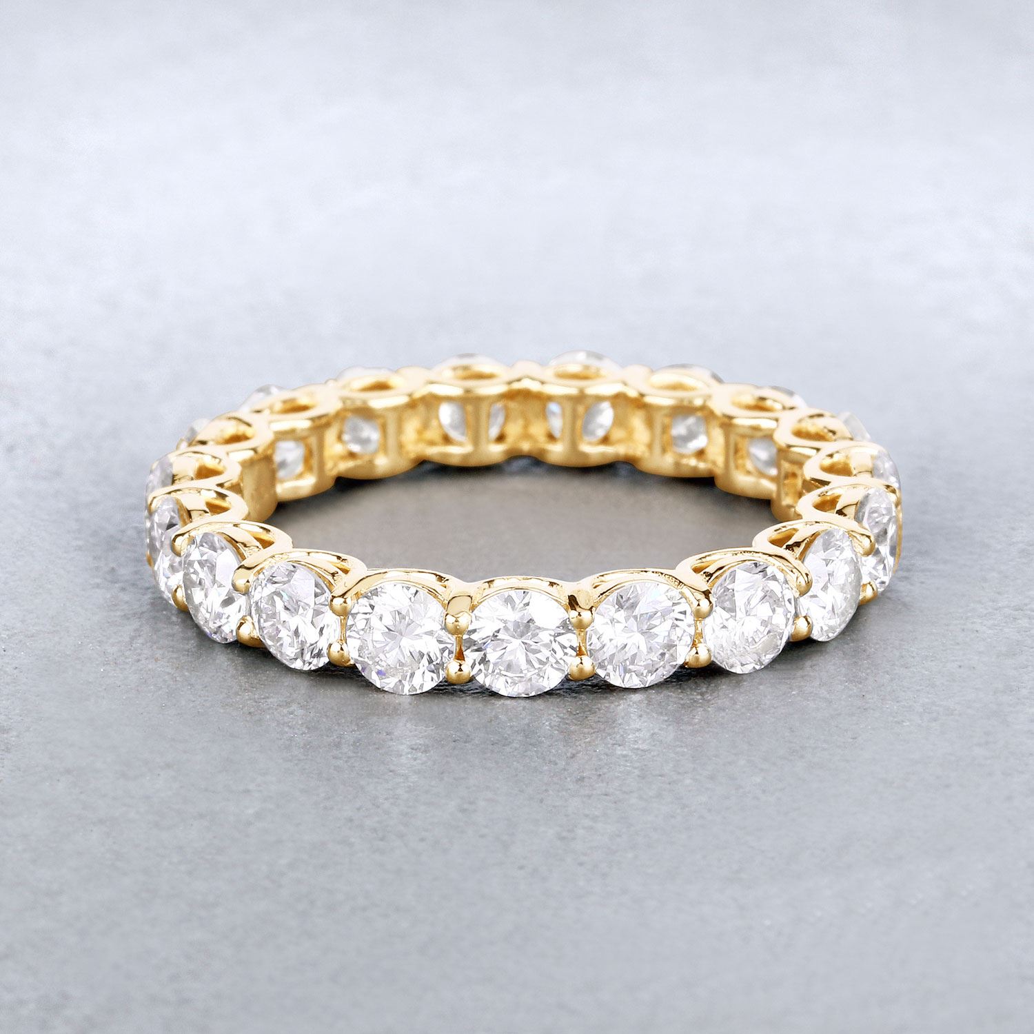This 14 karat yellow gold ring features 3.00 carats total weight of round, brilliant-cut, colorless to near-colorless, prong-set, lab-grown diamonds. The ringis US size 7 and resizing is limited. Please consult with your local jeweler for sizing possibilities.& nbsp; See below for more details and other information. Admin: Q5743/12-owo