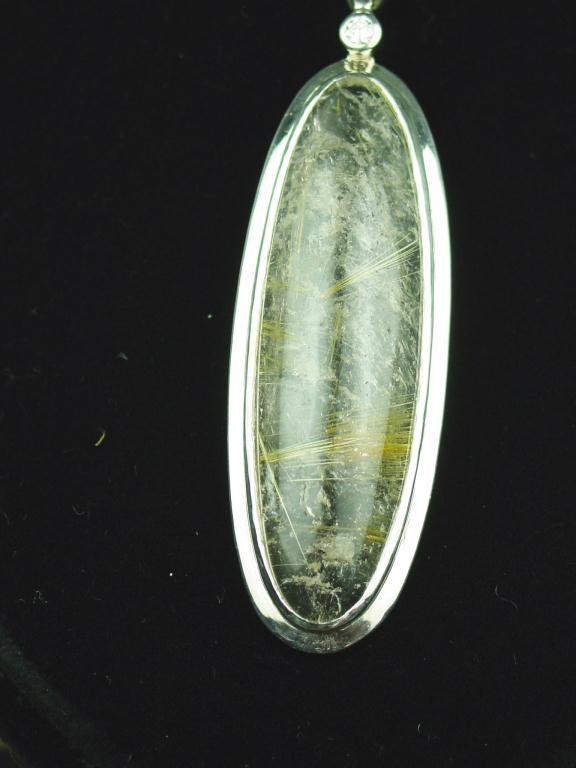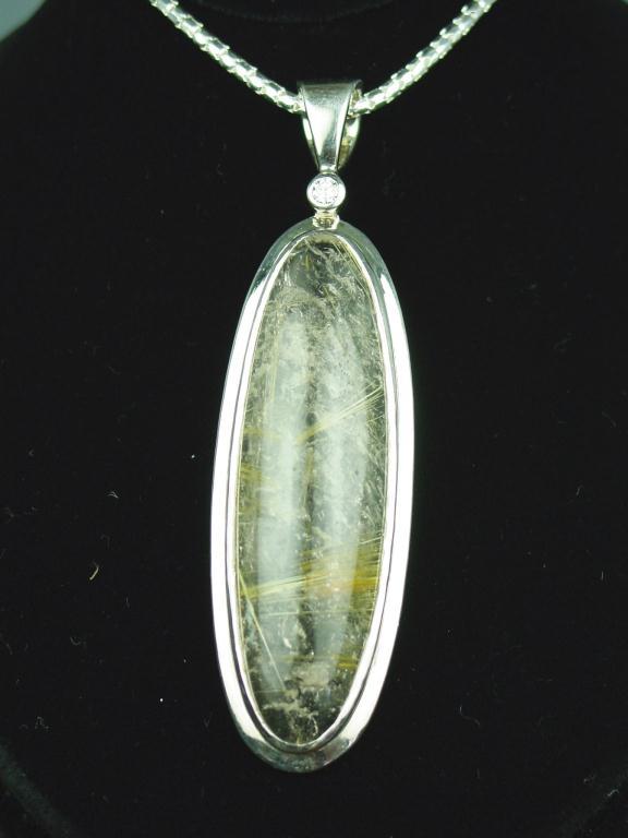 Exquisite Ladies Custom Made Silver Necklace Very large, bezel set with a fine Rutile Quartz crystal and bezel set with a round diamond averaging 0.20 carats of G-H color and VS clarity.Very large, bezel set with a fine Rutile Quartz crystal and bezel set with a round diamond averaging 0.20 carats of G-H color and VS clarity.