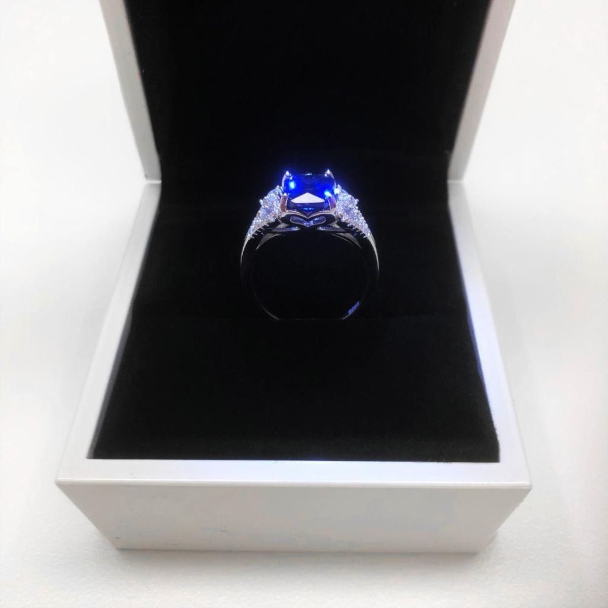 Exquisite Ladies Silver 925 Blue Stone Ring With LED Ring Box. View Photos For Further Details.