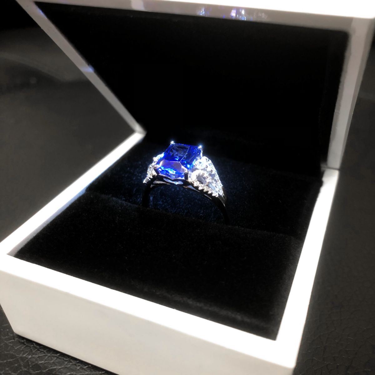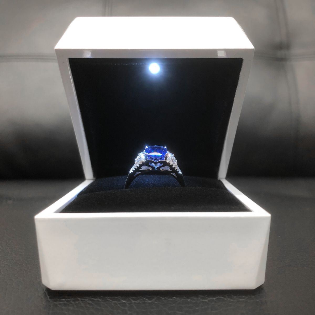 Exquisite Ladies Silver Tone Blue Tanzanite Ring, Brand New, Size 8. Comes In White Enameled LED Ring Box. See Photos For Further Inquiry. Â