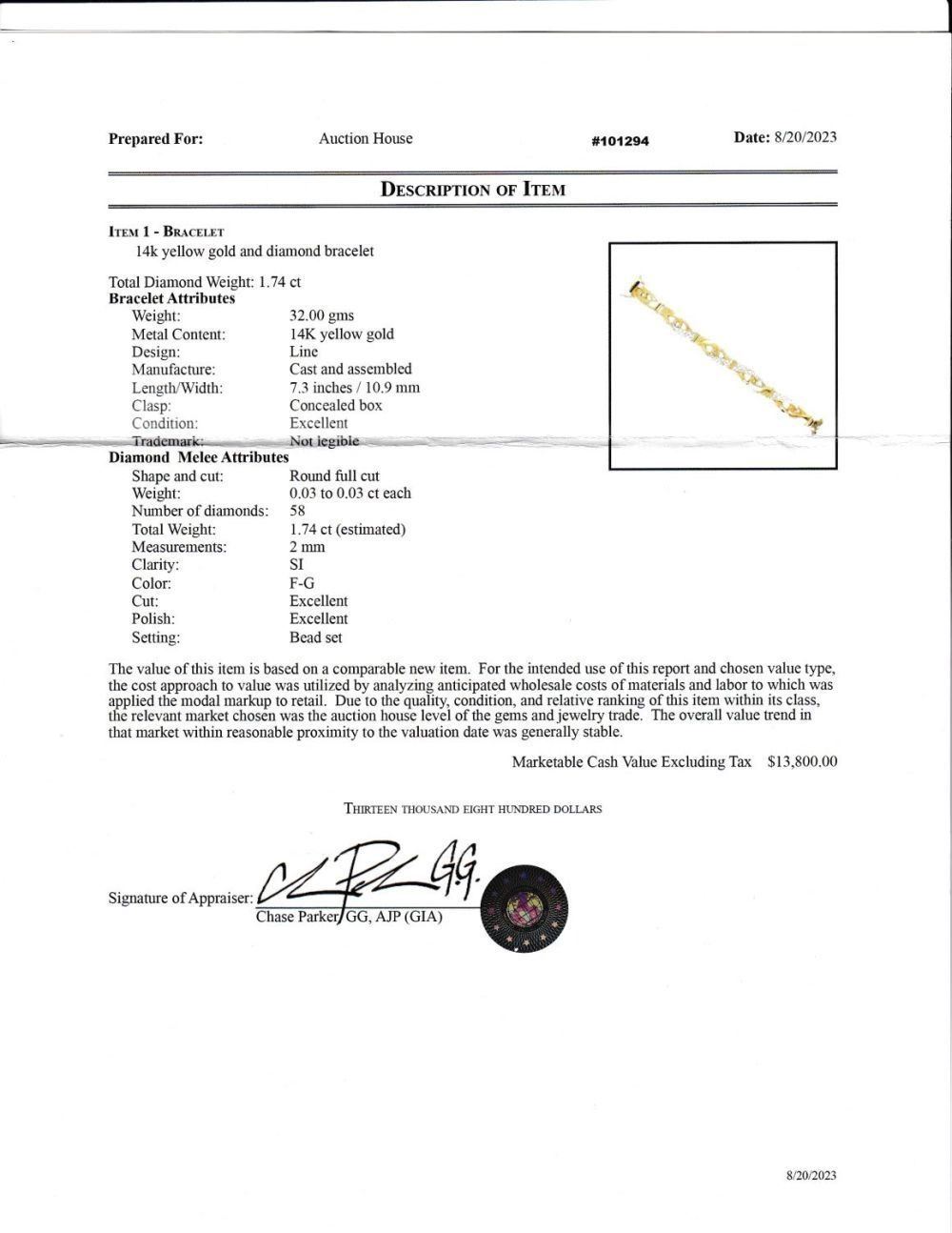 APPRAISAL REPORT: This bracelet is certified and appraised for $13,800.00 estimated retail replacement value by& nbsp;