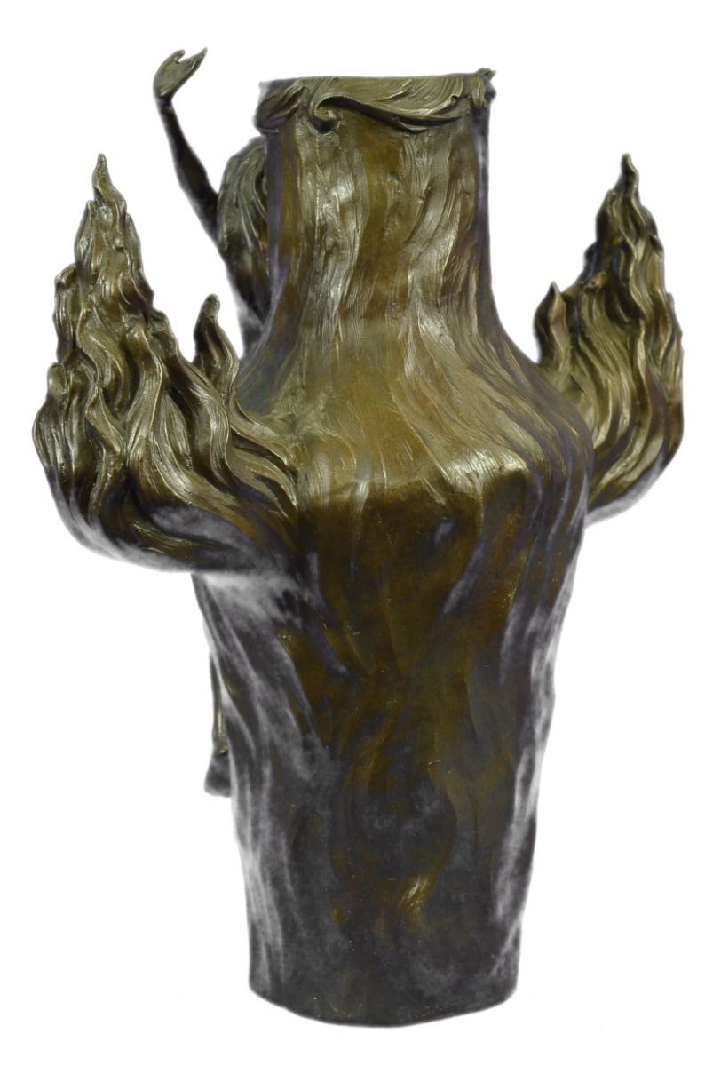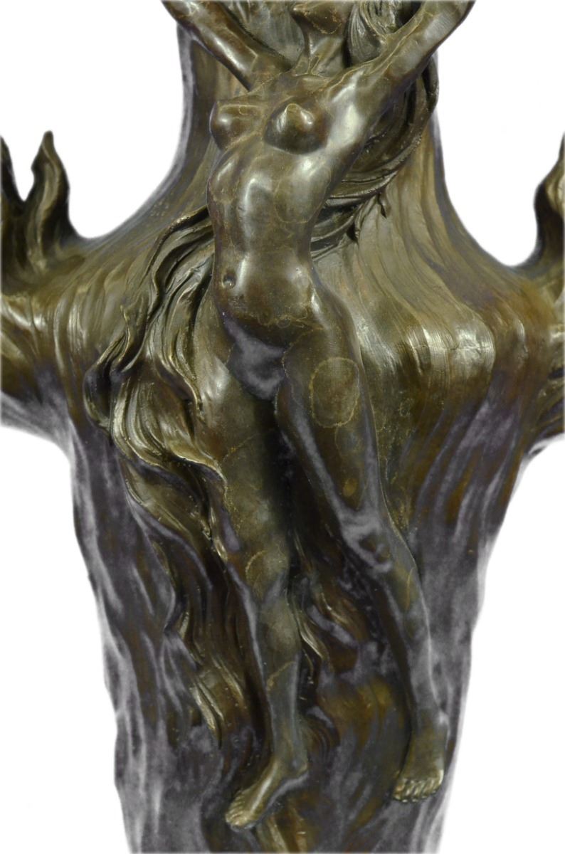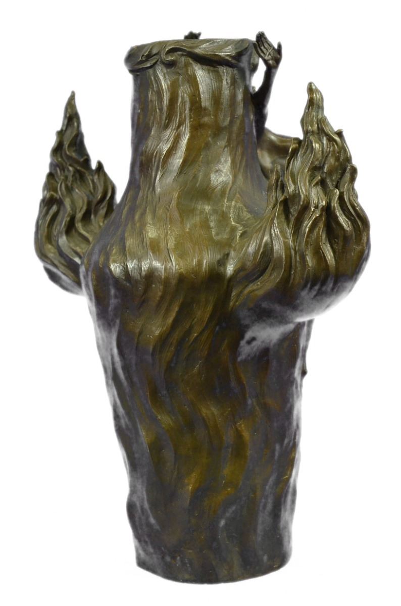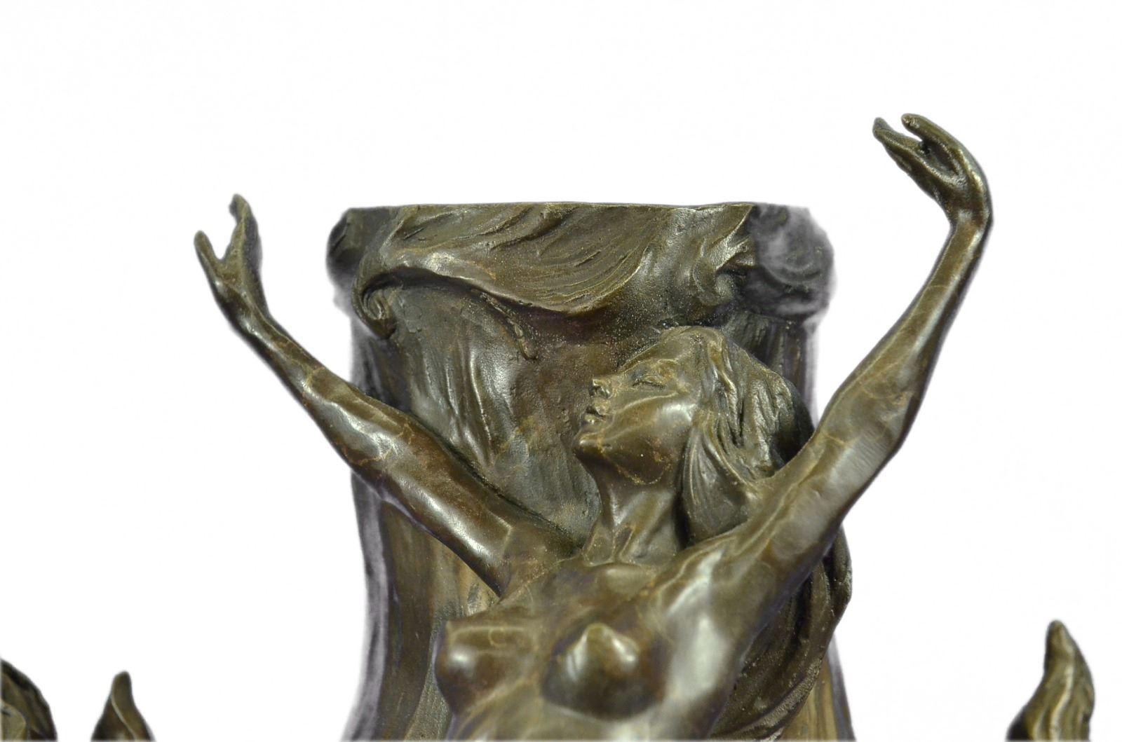 An exquisite vase that would be the center of attention in any room. Nude nymph surround the vase. The nymph seem to grow like blossoming flowers. Vines and flowers creep around her, almost a part of the vase. This unique piece can act as a flower pot or just an eyecatching addition to your abode. The vase itself is a brown patina. This Sculpture was cast using the Lost Wax Method and mounted on a marble base. Bronze Dimensions: Height 14 X Width 12 inches. Weight: 12 LBS.