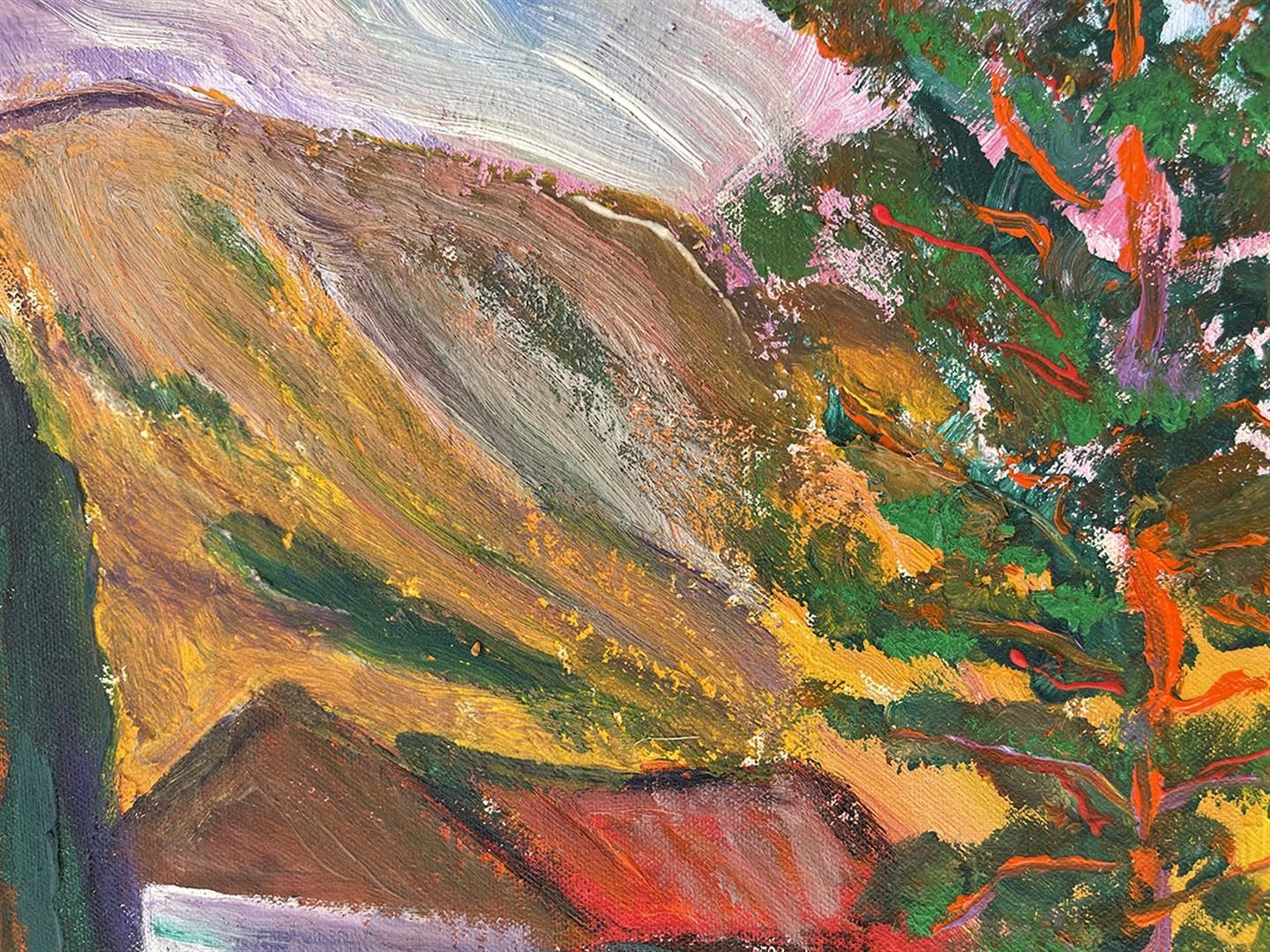 Exquisite original acrylic on canvas. Hand signed by Artist. This artwork comes framed ready to hang. Art size16x20 inches. Frame size 22x26.