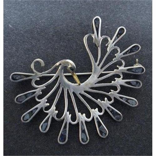 LOVELY AND ELEGANT STERLING SILVER BROOCH AND OR PENDANT, DEPICTING EXQUISITE BIRD, PEACOCK?, ADORNED WITH TURQUOISE, as per images - In excellent, mint,condition,Measuring about 1 3/4" X 1 1/2" - US Buyer to pay 7.00 for shipping plus insurance.THANKS.