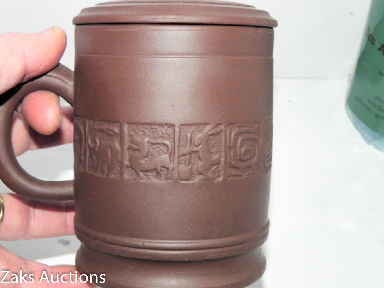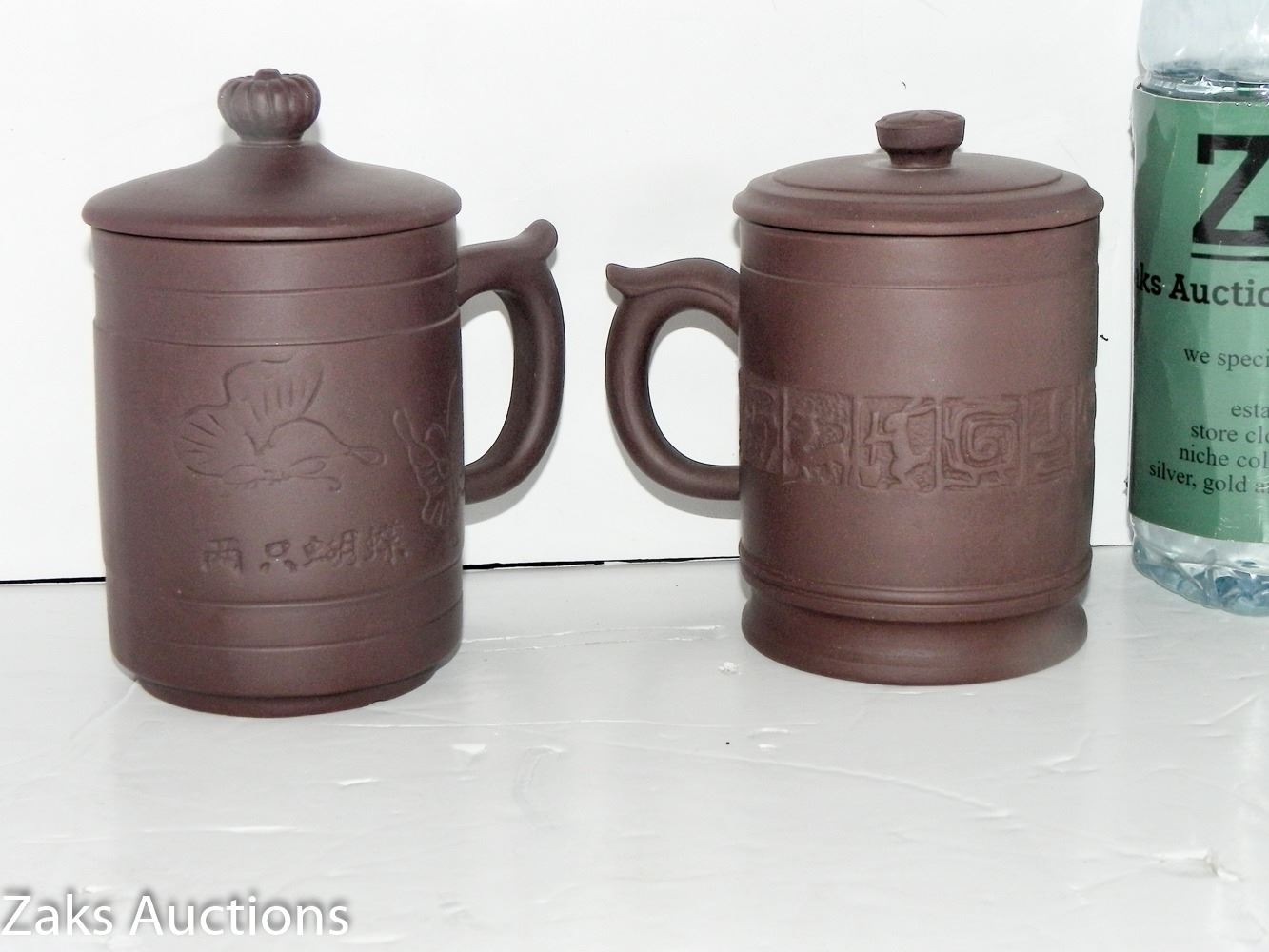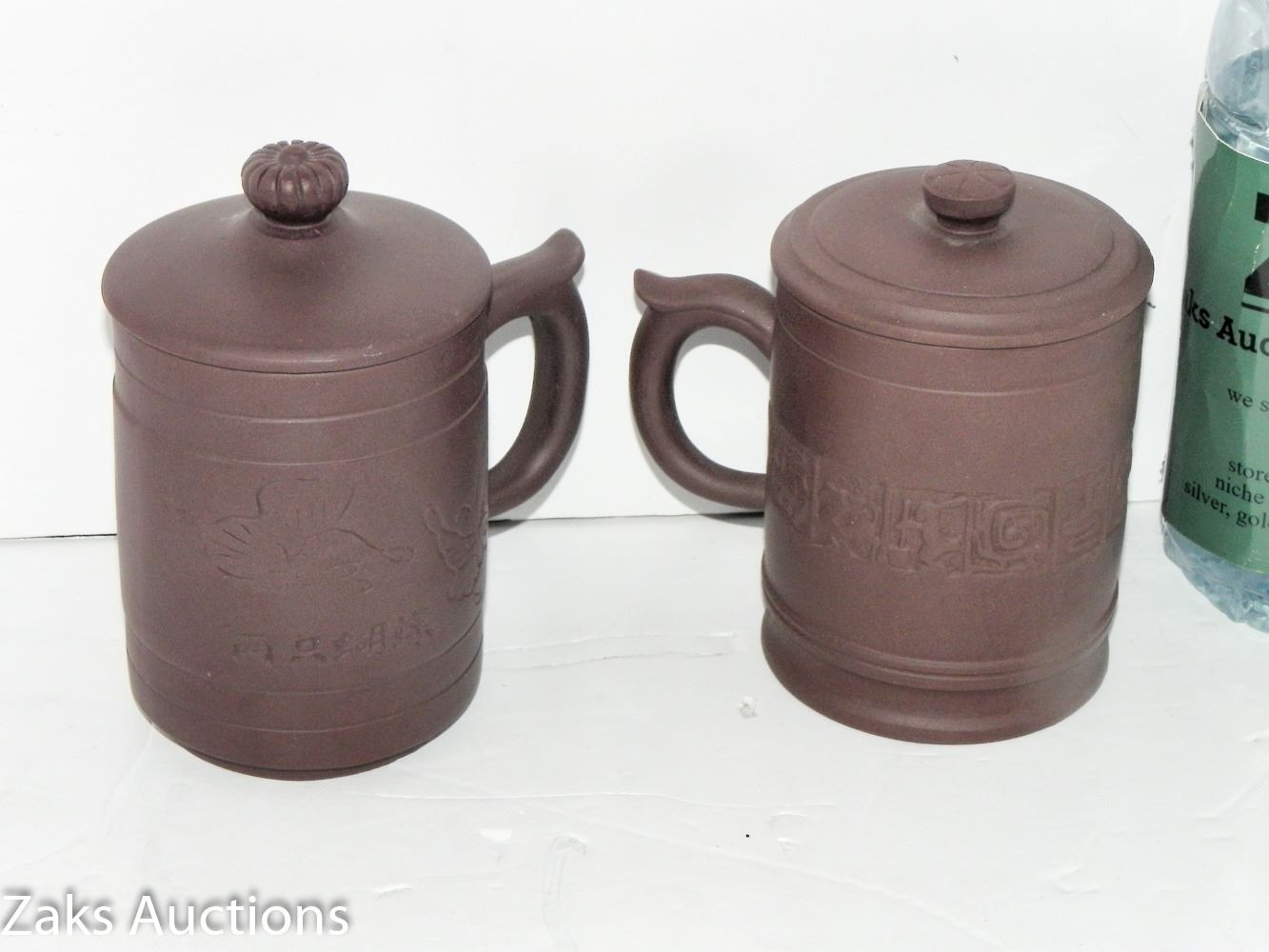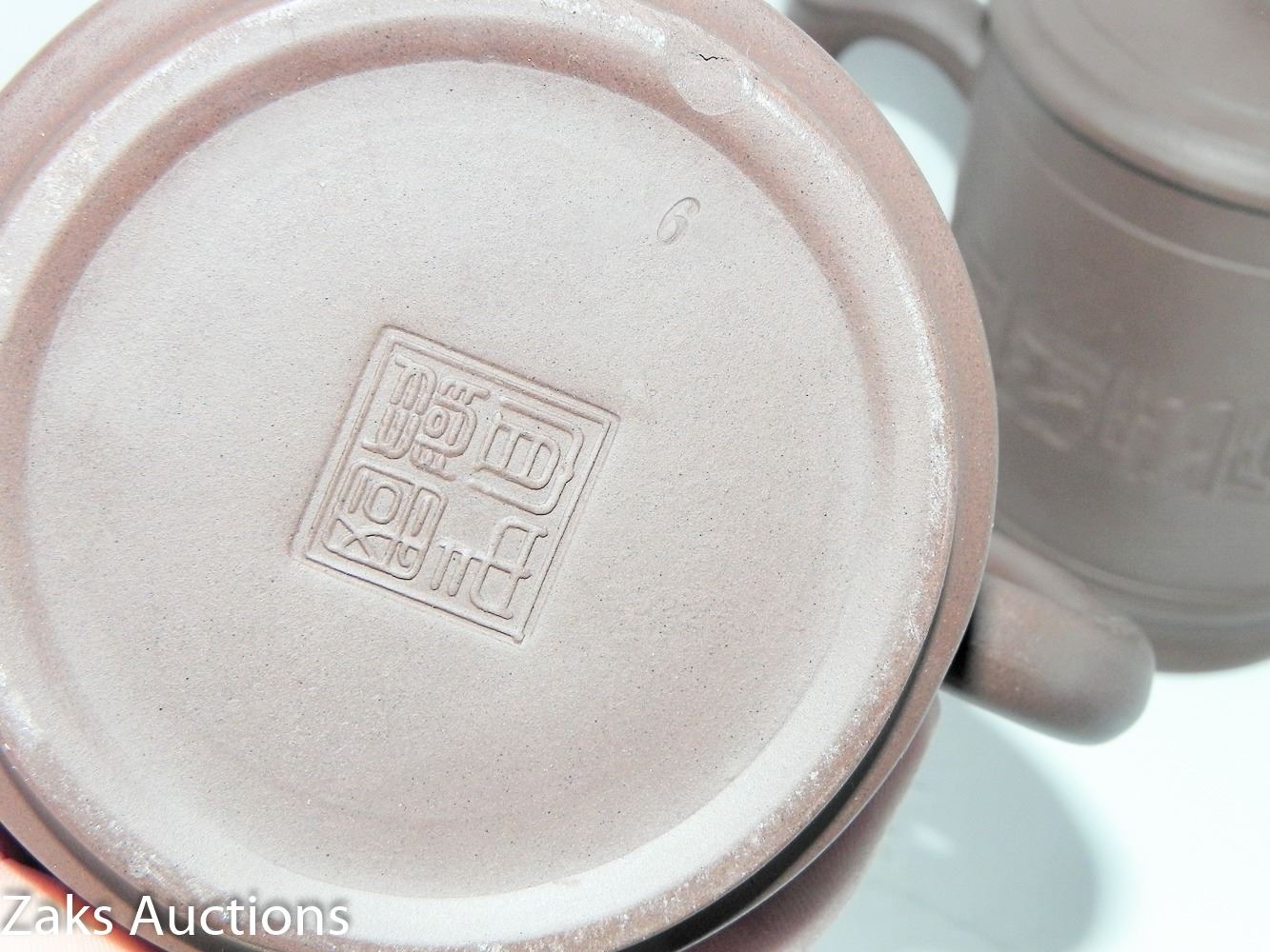 Exquisite Set of 2 Signed Purple Clay Kidded Mugs