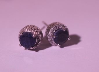 925 Sterling Earrings - Blue Sapphire; Gemstone 3.20 ct twt; Diamond .5 ct dwt