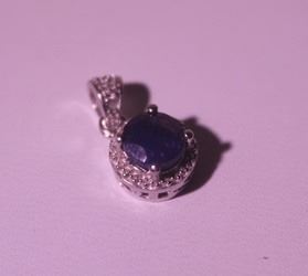 925 Sterling Pendant - Blue Sapphire; Gemstone 1.90 ct twt; Diamond .5 ct dwt