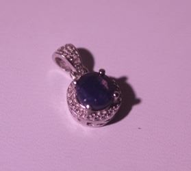 925 Sterling Pendant - Blue Sapphire; Gemstone 2 ct twt; Diamond .5 ct dwt