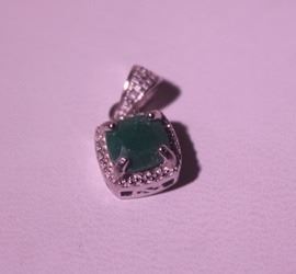 925 Sterling Pendant - Genuine Columbian Emerald; Gemstone 2 ct twt; Diamond .5 ct dwt