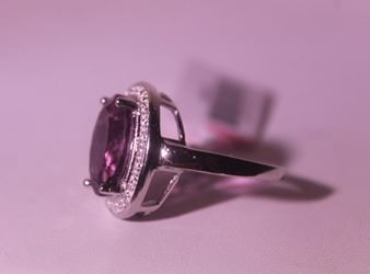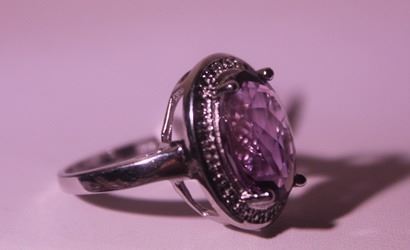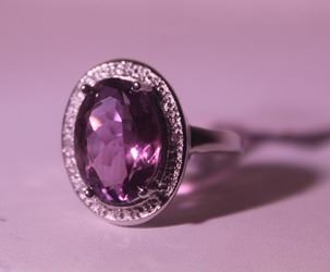 925 Sterling Ring - Amethyst; Gemstone 8 ct twt; Diamond .5 ct dwt