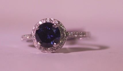 925 Sterling Ring - Lab Blue Sapphire; Gemstone 2 ct twt; Diamond .5 ct dwt