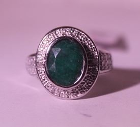 925 Sterling Ring - Genuine Columbian Emerald; Gemstone 4 ct twt; Diamond .5 ct dwt