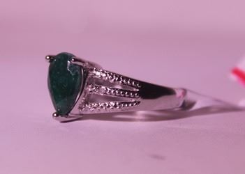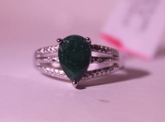 925 Sterling Ring - Genuine Columbian Emerald, Pear Cut; Gemstone 3.50 ct twt; Diamond .5 ct dwt