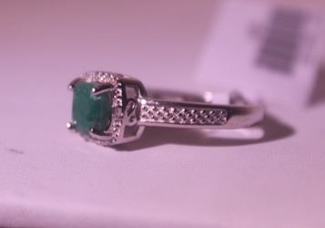 925 Sterling Ring - Genuine Columbian Emerald; Gemstone 2 ct twt; Diamond .5 ct dwt