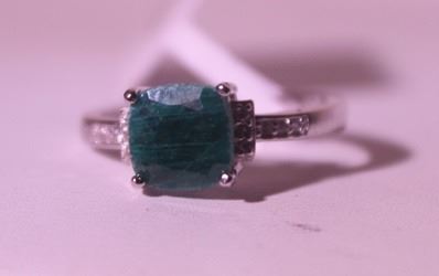 925 Sterling Ring - Genuine Columbian Emerald; Gemstone 2.25 ct twt; Diamond .5 ct dwt