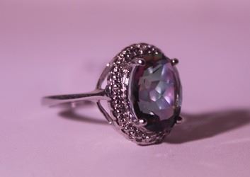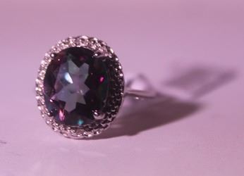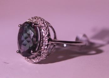 925 Sterling Ring - Lab Alexandrite; Gemstone 4.75 ct twt; Diamond .5 ct dwt