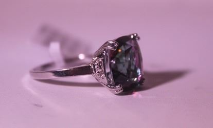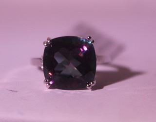 925 Sterling Ring - Lab Alexandrite; Gemstone 6.80 ct twt; Diamond .5 ct dwt