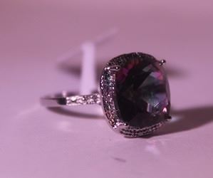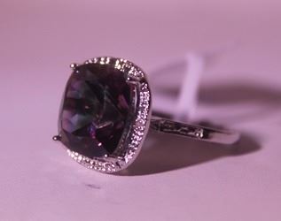 925 Sterling Ring - Lab Alexandrite; Gemstone 7 ct twt; Diamond .5 ct dwt