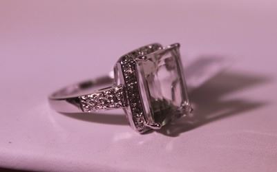925 Sterling Ring - Lab Aquamarine; Gemstone 6 ct twt; Diamond .5 ct dwt