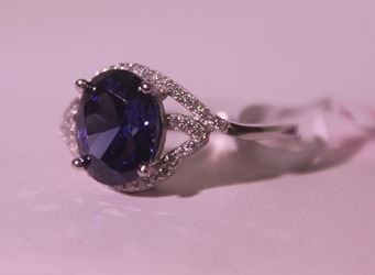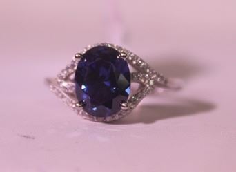 925 Sterling Ring - Lab Blue Sapphire; Gemstone 3 ct twt; Diamond .5 ct dwt